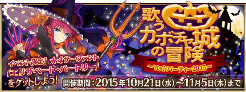 本イベントのメインクエストを最後までクリアすると、イベント限定★4(SR)サーヴァント「エリザベート・バートリー[ハロウィン]」が必ずゲットできます!